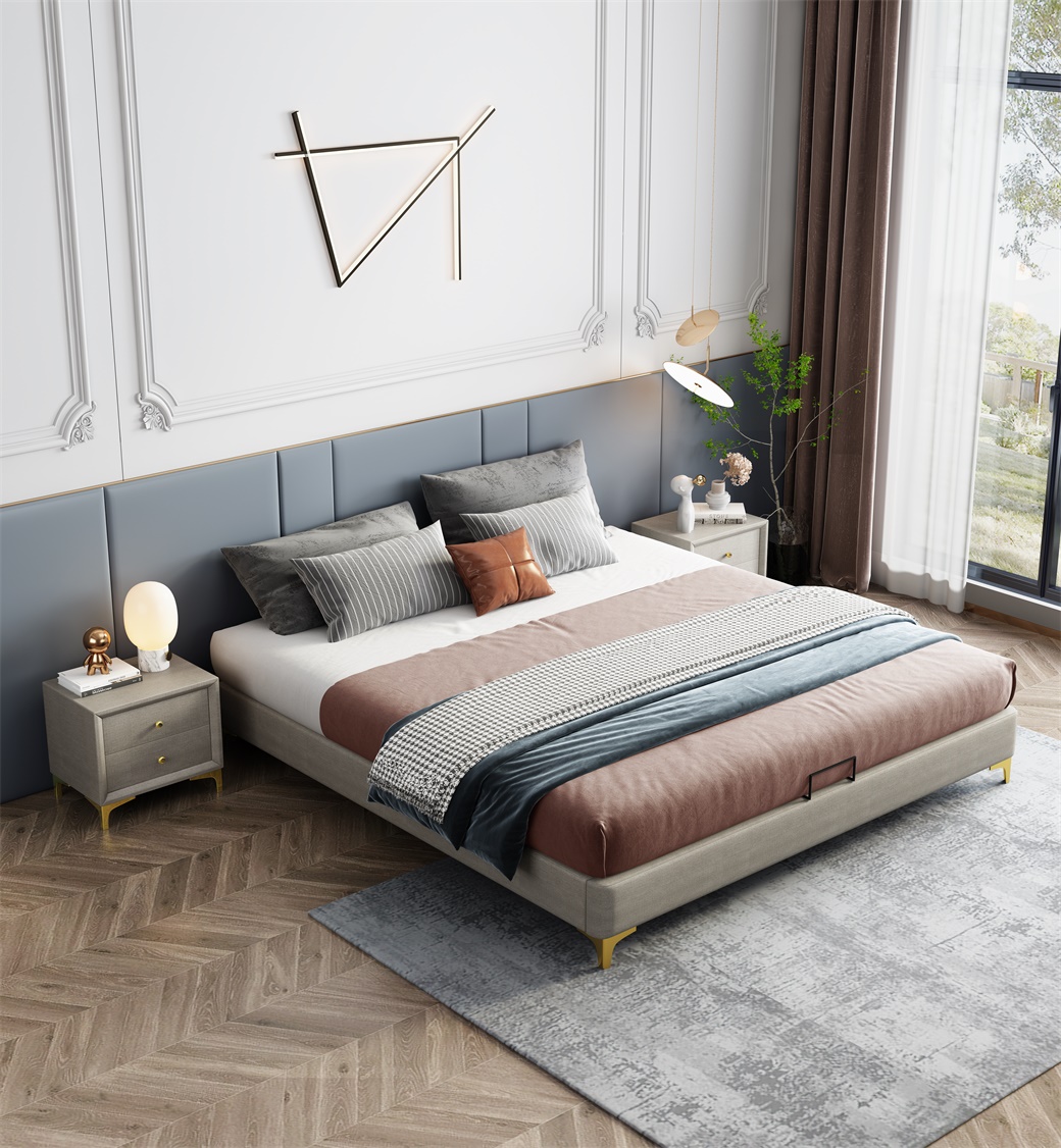 【卡罗】轻奢面料:西皮+靠包填充:无靠包+框架:桉木+标配床板:排骨架A床板1.8米床