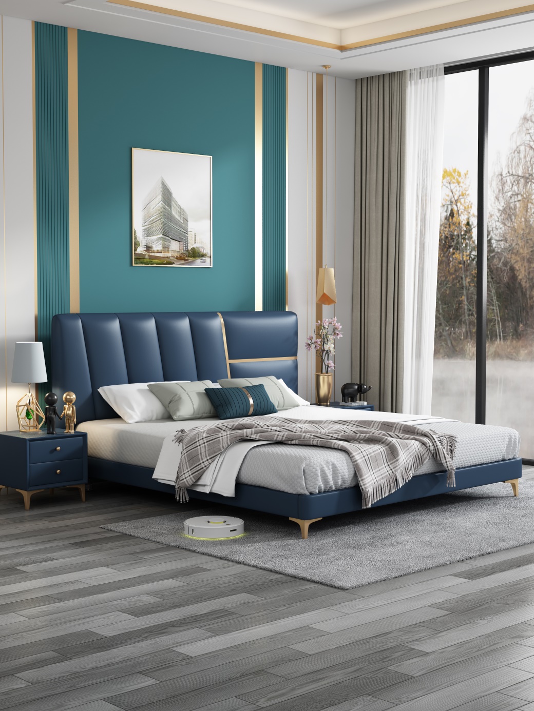 【卡罗】轻奢面料:超纤皮+靠包填充:海绵+框架:桉木1.8米床
