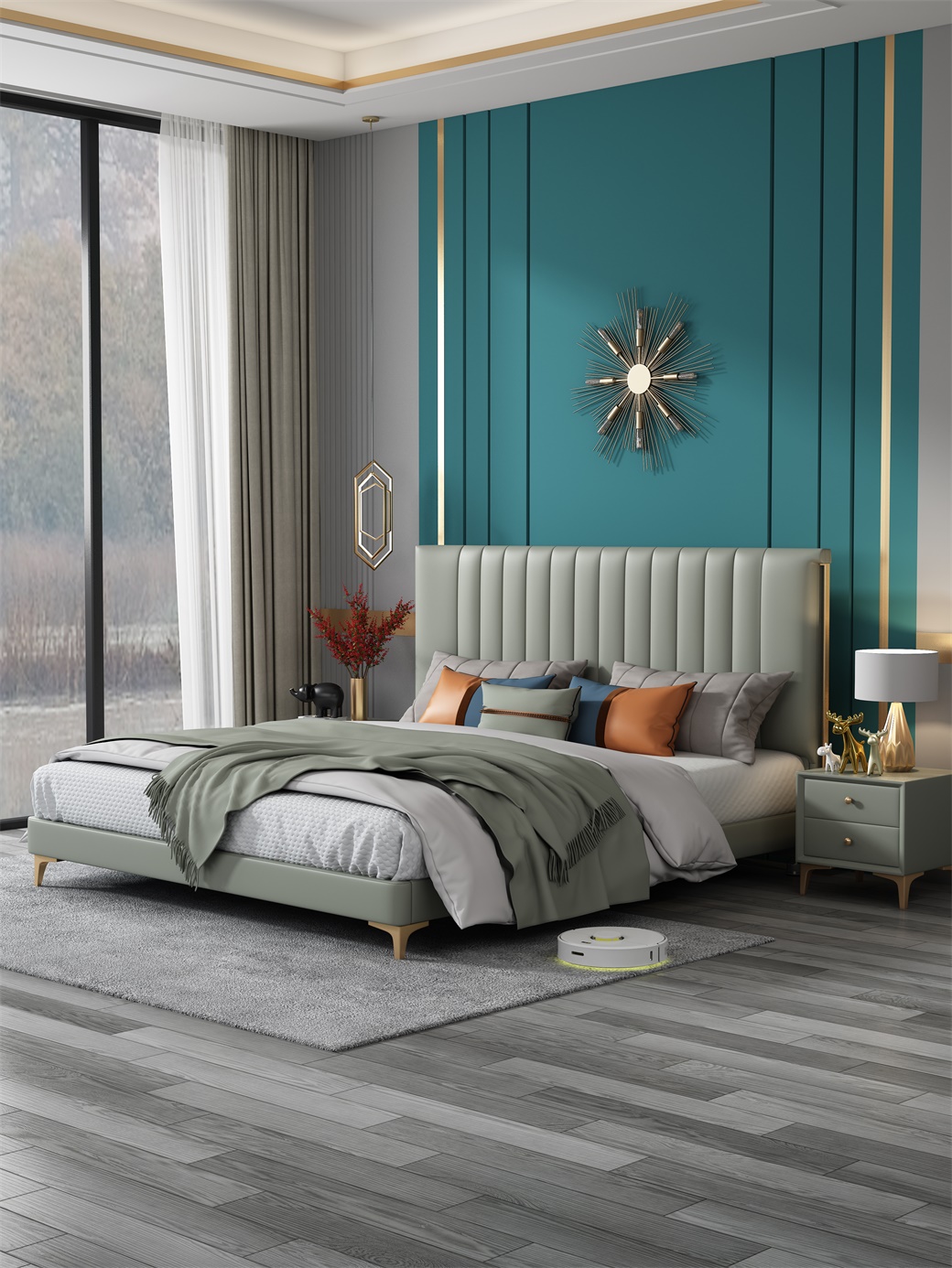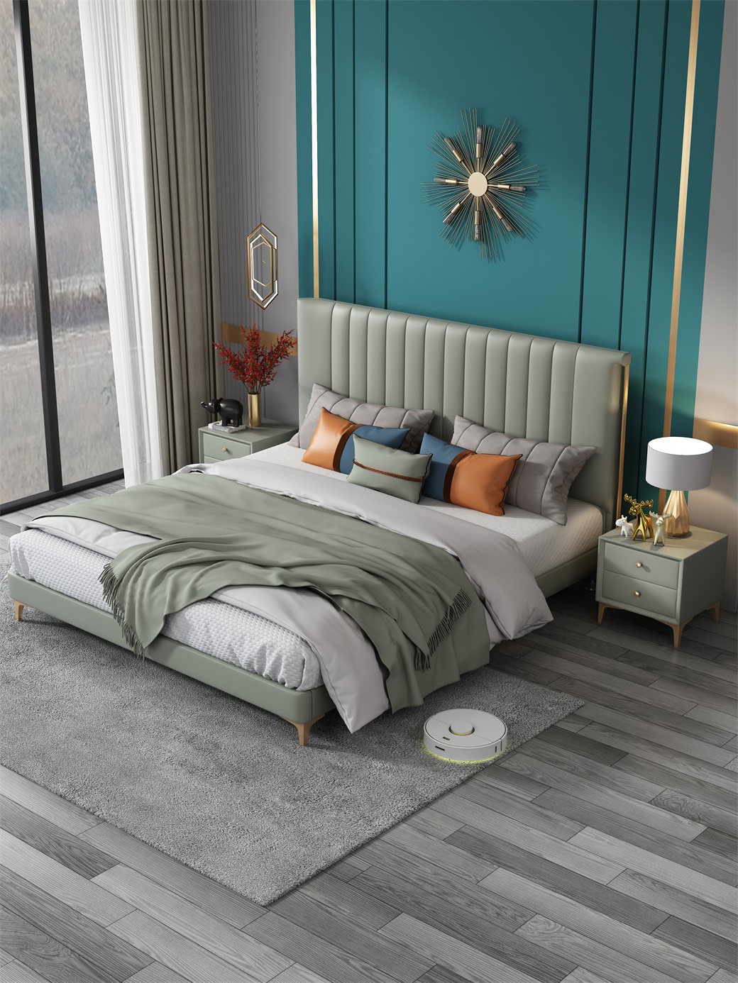 【卡罗】轻奢面料:超纤皮+靠包填充:海绵+框架:桉木1.8米床