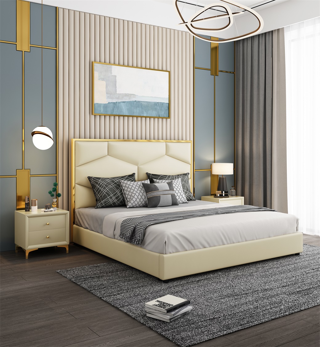 • 面料:金刚皮+靠包填充:海绵+框架:桉木+标配床板:排骨架A床板