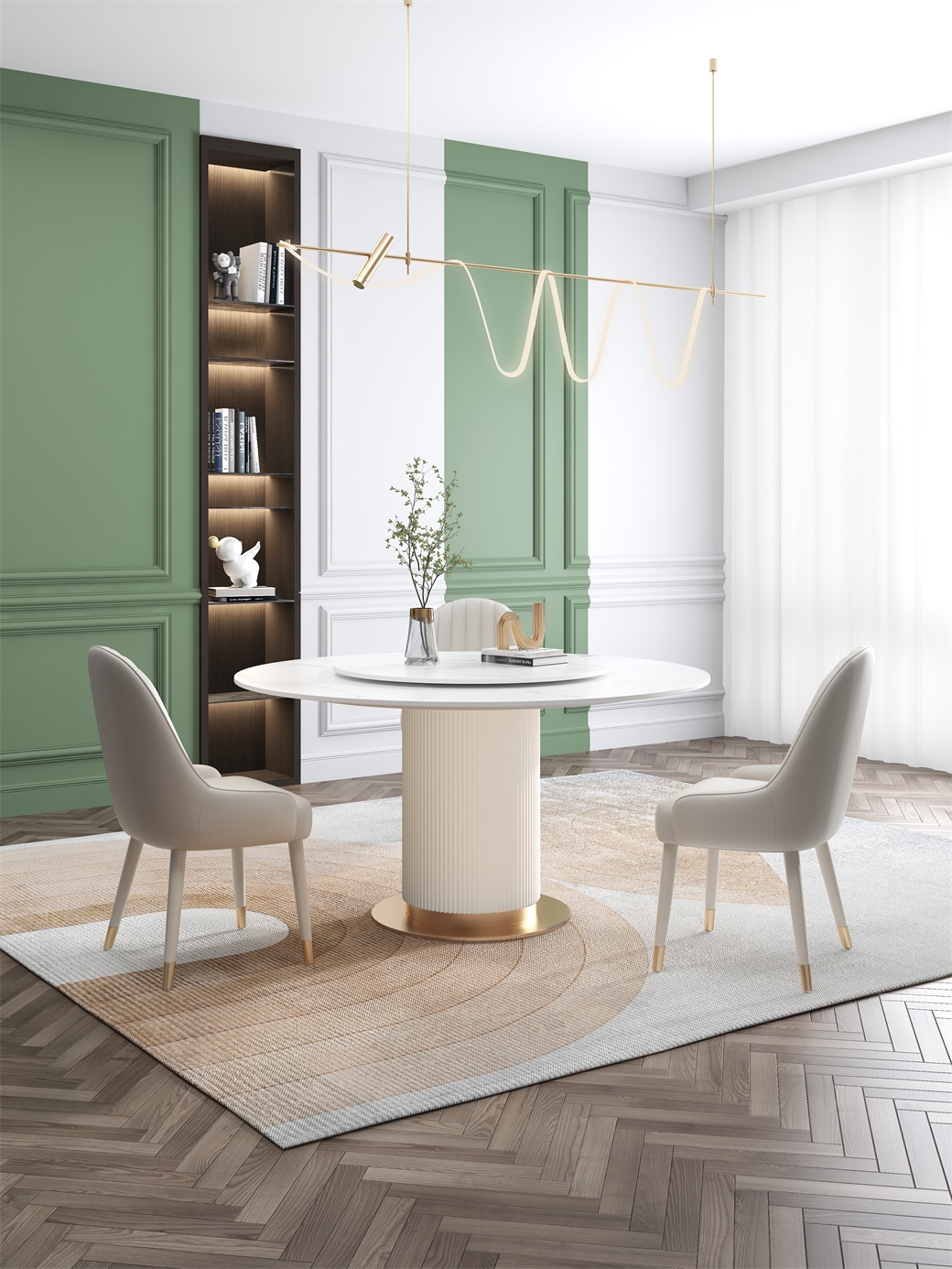 【洛梵】轻奢 不锈钢脚架+亮光岩板 餐桌