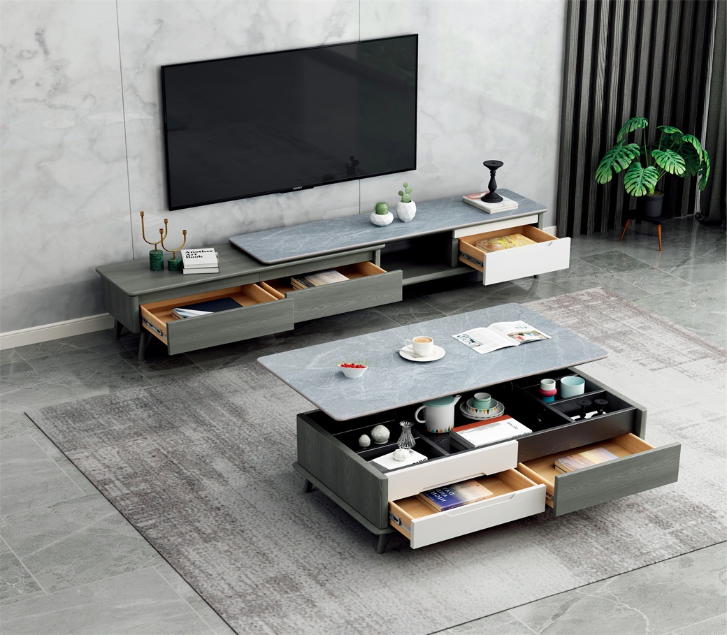 【品上佳】极简 台面:岩板+柜体:密度板和松木结合 茶几