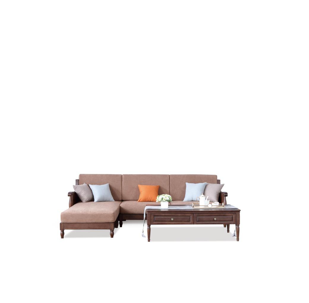 【简木】简美 进口橡胶实木 浅咖色 转角贵妃沙发