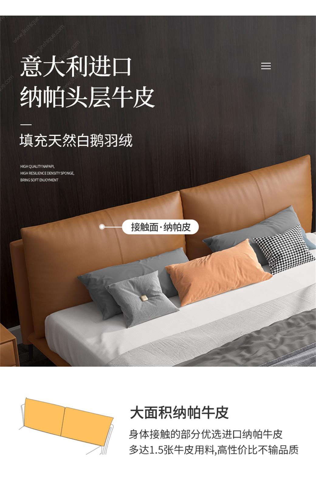 【乐迪】极简 接触面仿真皮/科技布+实木内架+羽绒+公仔棉+高密度海棉+碳素钢脚 1.5米床