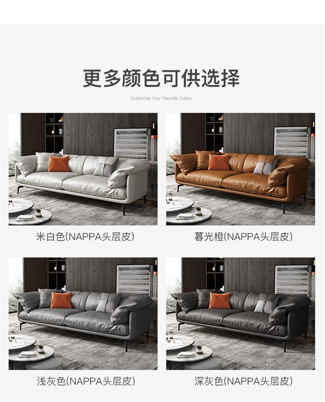【乐迪】极简 接触面仿真皮+高密度海棉+羽绒+实木内架+碳素钢脚 四人位沙发