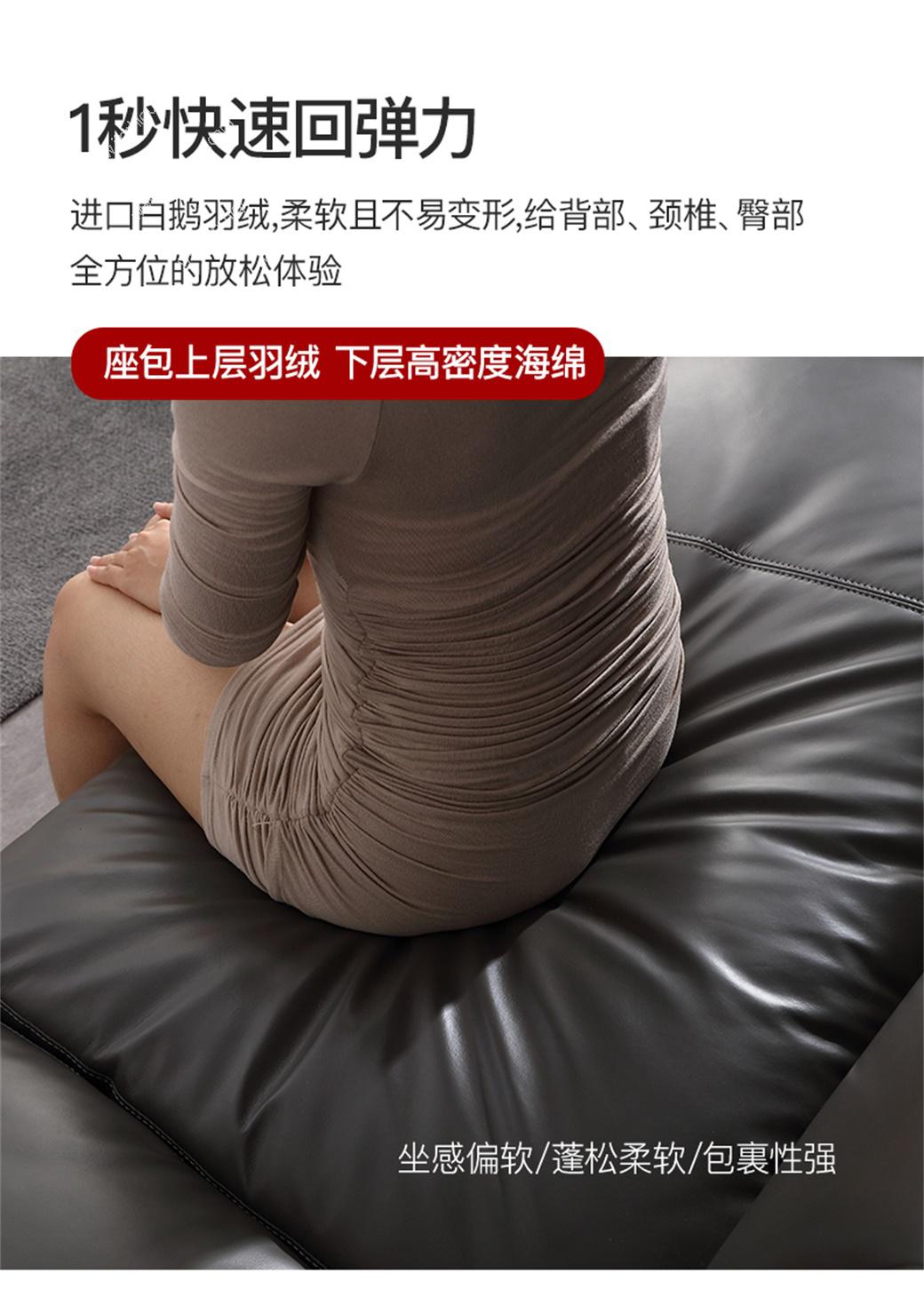• 接触面仿真皮+高密度海棉+羽绒+实木内架+碳素钢脚