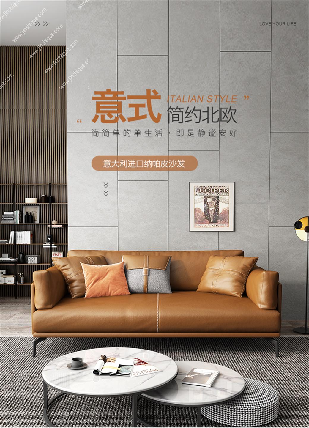 【乐迪】极简 接触面仿真皮+高密度海棉+羽绒+实木内架+碳素钢脚 五人位沙发