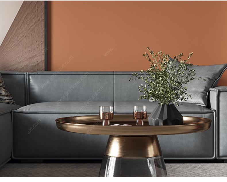 【奢兰蒂】极简 不锈钢拉丝封釉镀古铜色盘面+框架+钢化玻璃 0.5米茶几