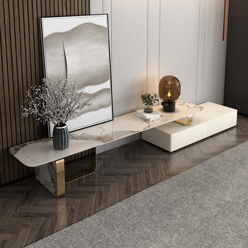 【奢兰蒂】极简 不锈钢钛金+密度板+烤漆+岩板 1.8米电视柜