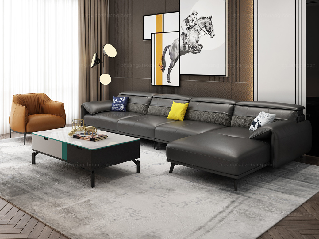 【极致生活】极简网红爆款,乳胶真皮沙发,自由搭配组合,小户挚爱,5挡升降功能头枕,柔软舒适1+3+右贵妃