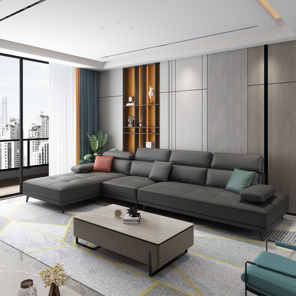 【极致生活】现代,科技布艺沙发,功能升降头枕,扶手五金伸展功能,抛光实木内架,1+3+右贵妃