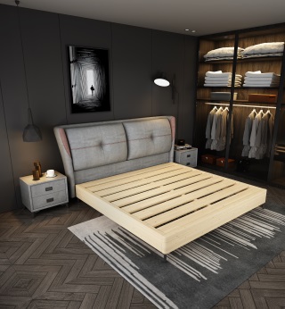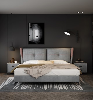 • 面料:科技布 靠包填充:海绵 框架:松木 床边床尾:整块松木 配静音床板