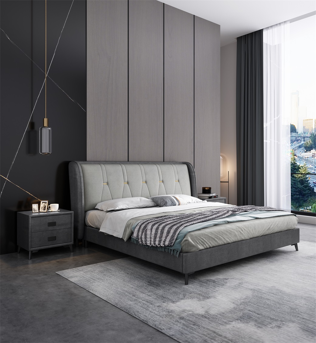 【品上佳】 极简风格 面料:科技布 靠包填充:海绵 框架:松木 床边床尾:整块松木 配静音床板 1.5米床