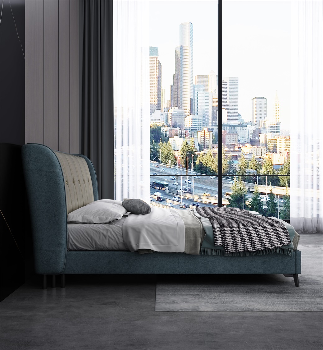 • 面料:科技布 靠包填充:海绵 框架:松木 床边床尾:整块松木 配静音床板