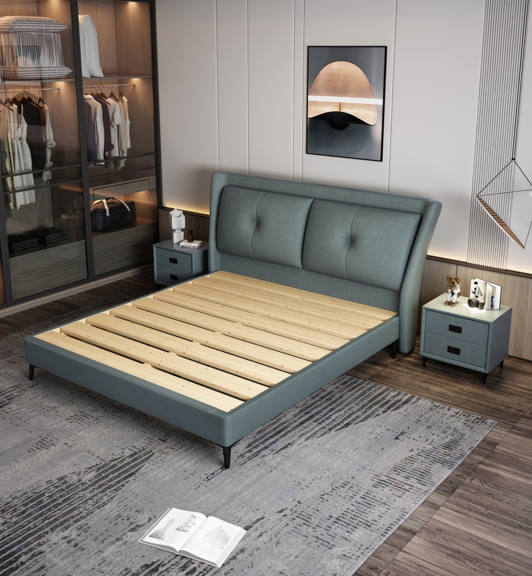 • 面料:科技布 靠包填充:海绵 框架:松木 床边床尾:整块松木 配静音床板