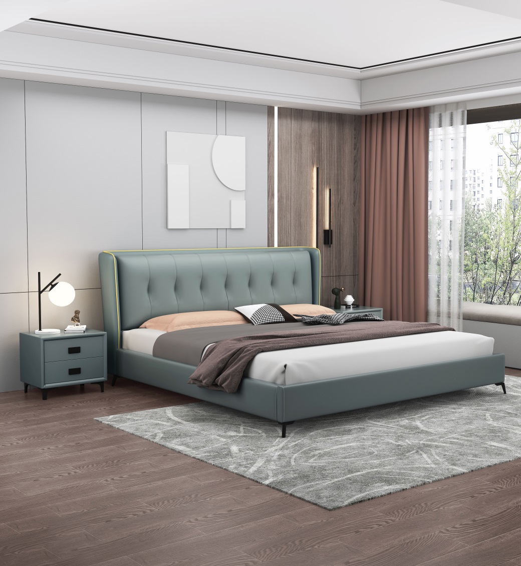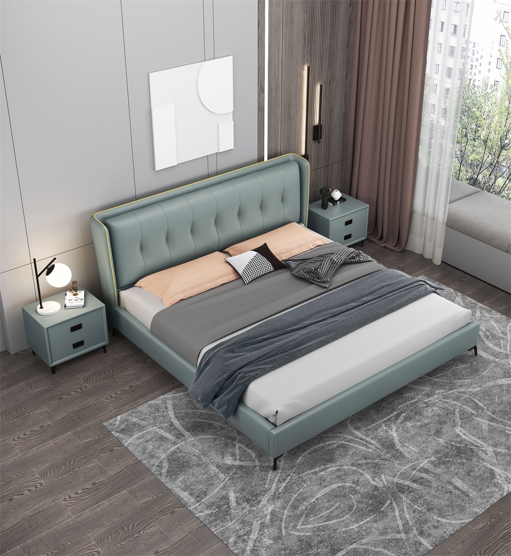 【品上佳】 极简风格 面料:牛皮绒(金刚皮) 靠包填充:海绵 框架:松木 配1.8公分厚床板 1.8米床