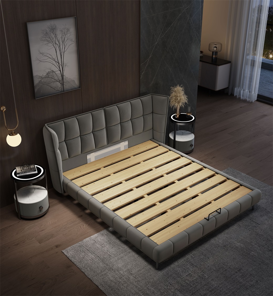 • 【品上佳】 极简 面料:科技布;靠包填充:海绵+羽绒;框架:全松木;床边床尾:全松木4.5cm;床板:静音床板厚2cm 1.8米床