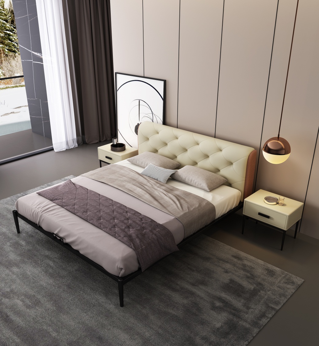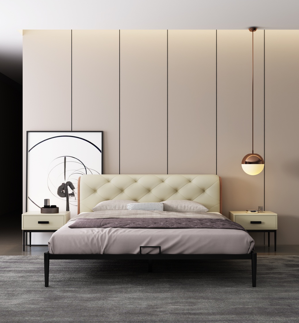 • 床头:仿真皮;侧面:科技布;背面:仿皮;框架:碳素钢;床板:钢和松木结合