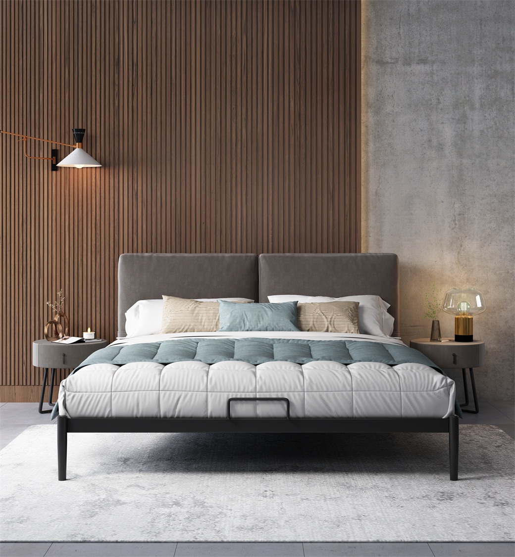 • 床头:科技绒;侧面:科技布;背面:科技布;框架:碳素钢;床板:钢和松木结合