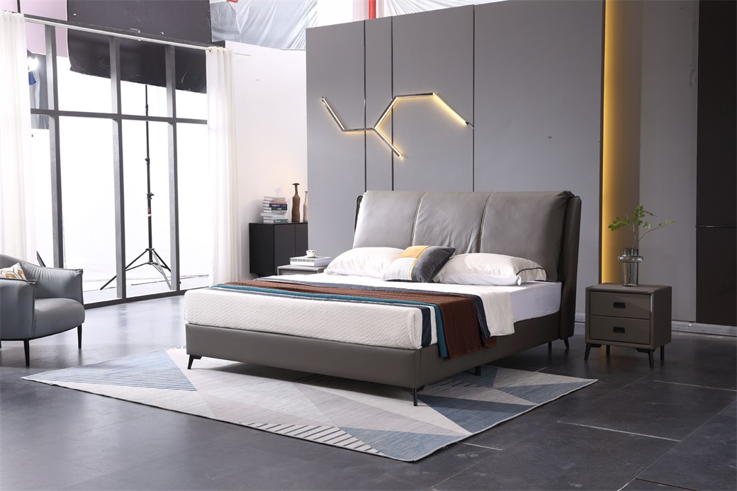 【品上佳】极简 超纤皮+羽绒靠包 1.8米床