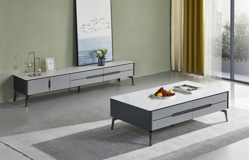 【里奥】极简 岩板面+烤漆柜体碳素钢脚架 2米电视柜
