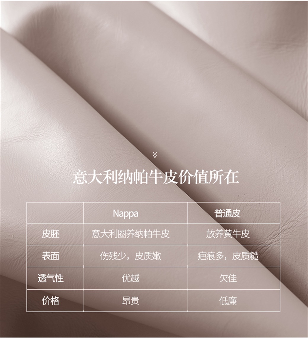 材质:接角面真皮+高密度海棉+全实木内架+不锈钢五金脚