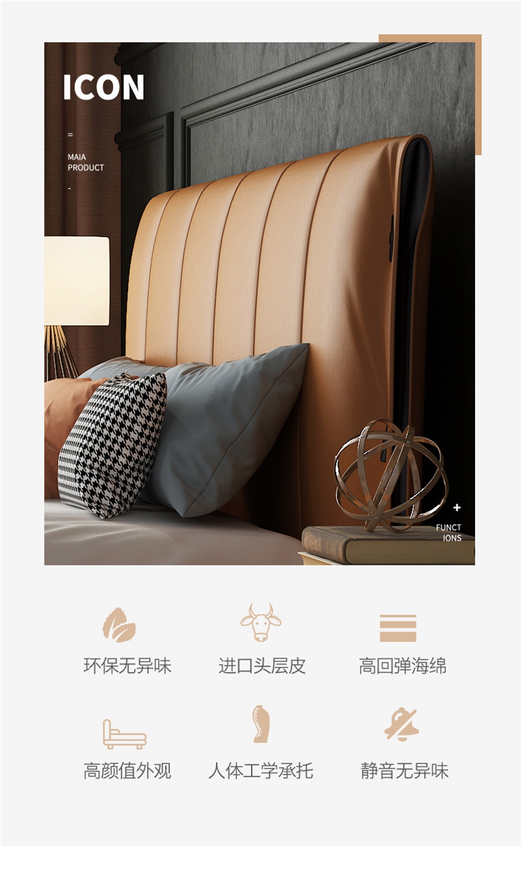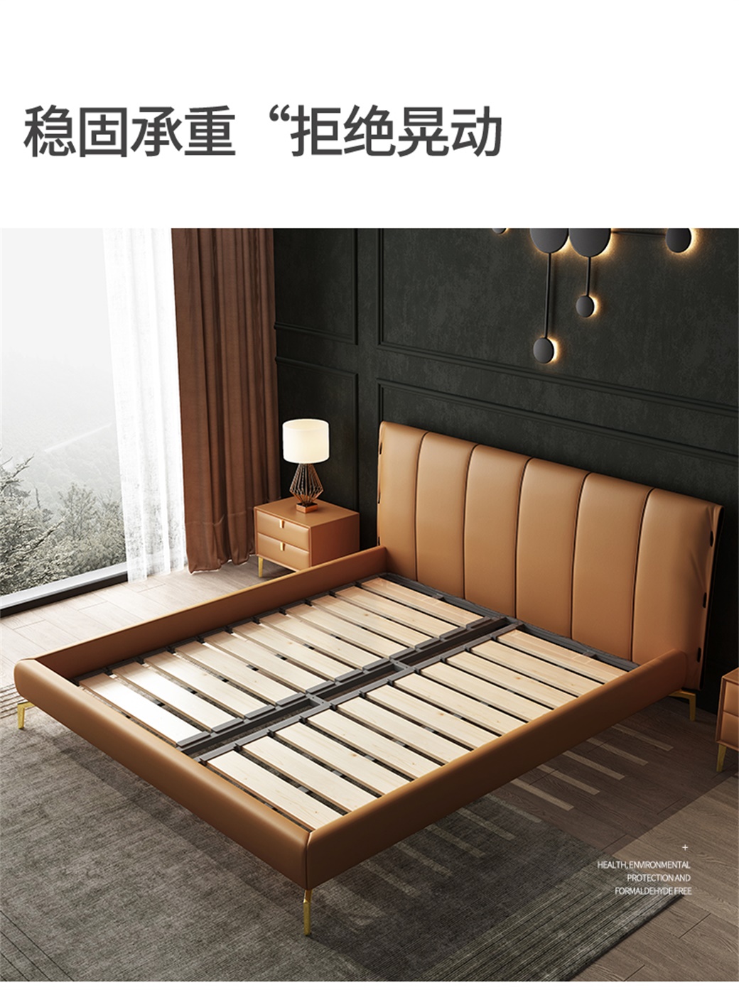 【简奢家】轻奢 接触面真皮+高密度海棉+白鹅羽绒+全实木内架+不锈钢五金脚 1.8米床