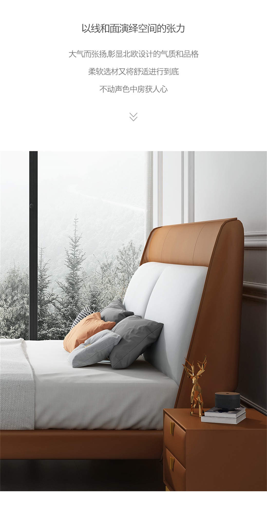 【简奢家】轻奢 接触面真皮+高密度海棉+全实木内架+不锈钢五金脚 1.8米床