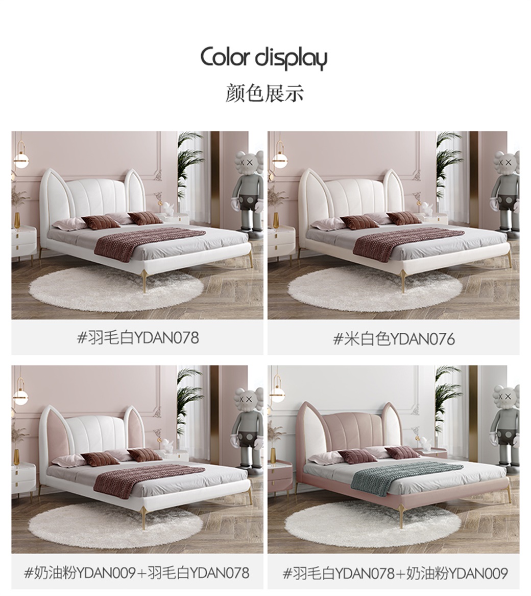 【简奢家】轻奢 接触面真皮+高密度海棉+全实木内架+不锈钢五金脚 1.2米床