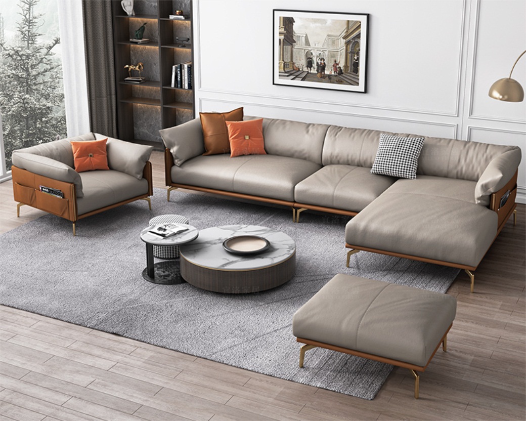 【简奢家】轻奢 全实木框架松木+鹅绒靠包+羽绒公仔包+不锈钢渡金脚+高密海棉整块坐垫 脚踏