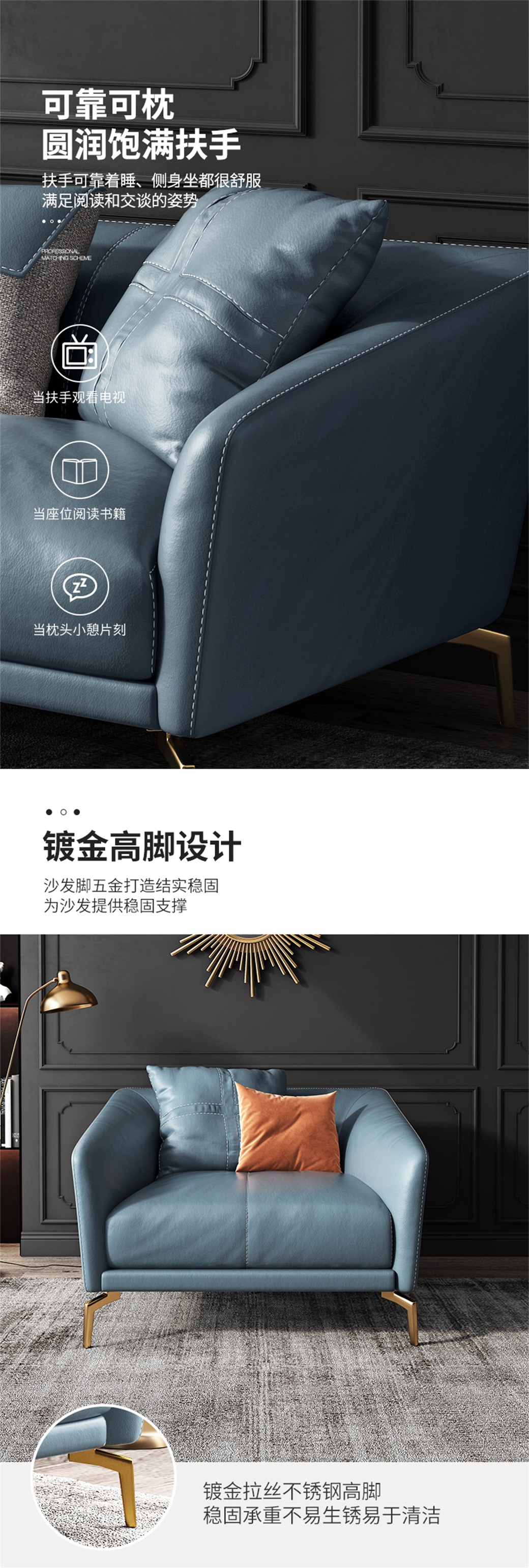 【简奢家】轻奢 全实木框架松木+羽绒公仔包+不锈钢渡金脚+高密海棉整块坐垫 单人位