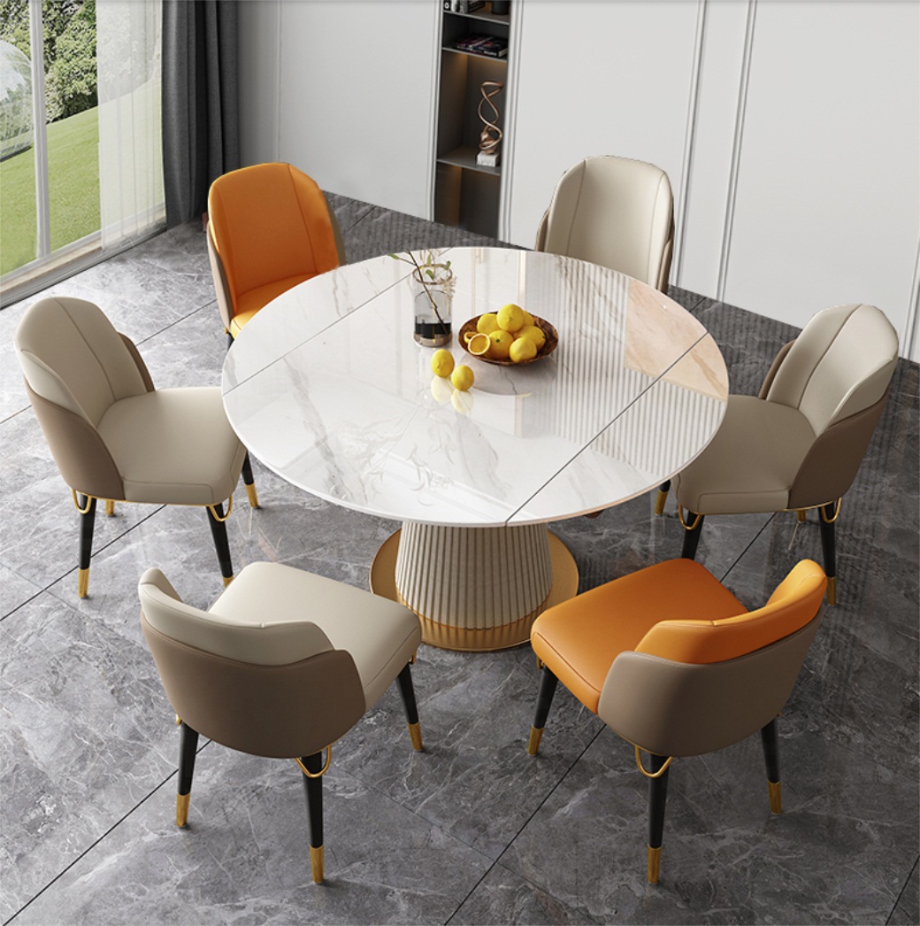 【简奢家】轻奢 碳素钢底架+12mm岩板+PU皮 旋转功能餐台