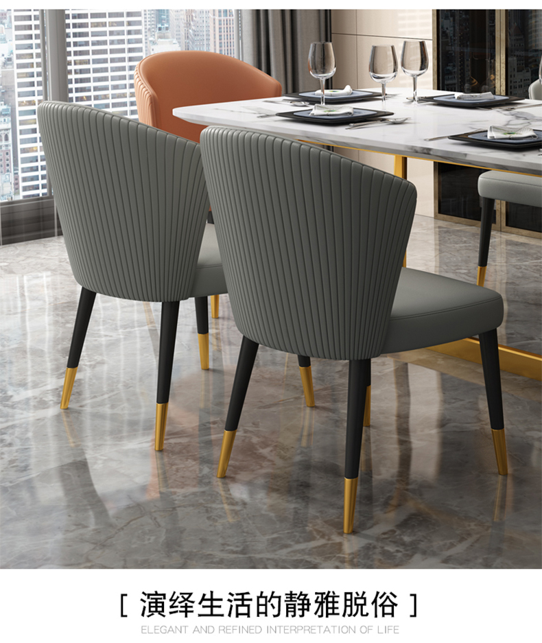 【简奢家】轻奢 环保皮+高密度海棉+实木脚+不锈钢电镀 餐椅