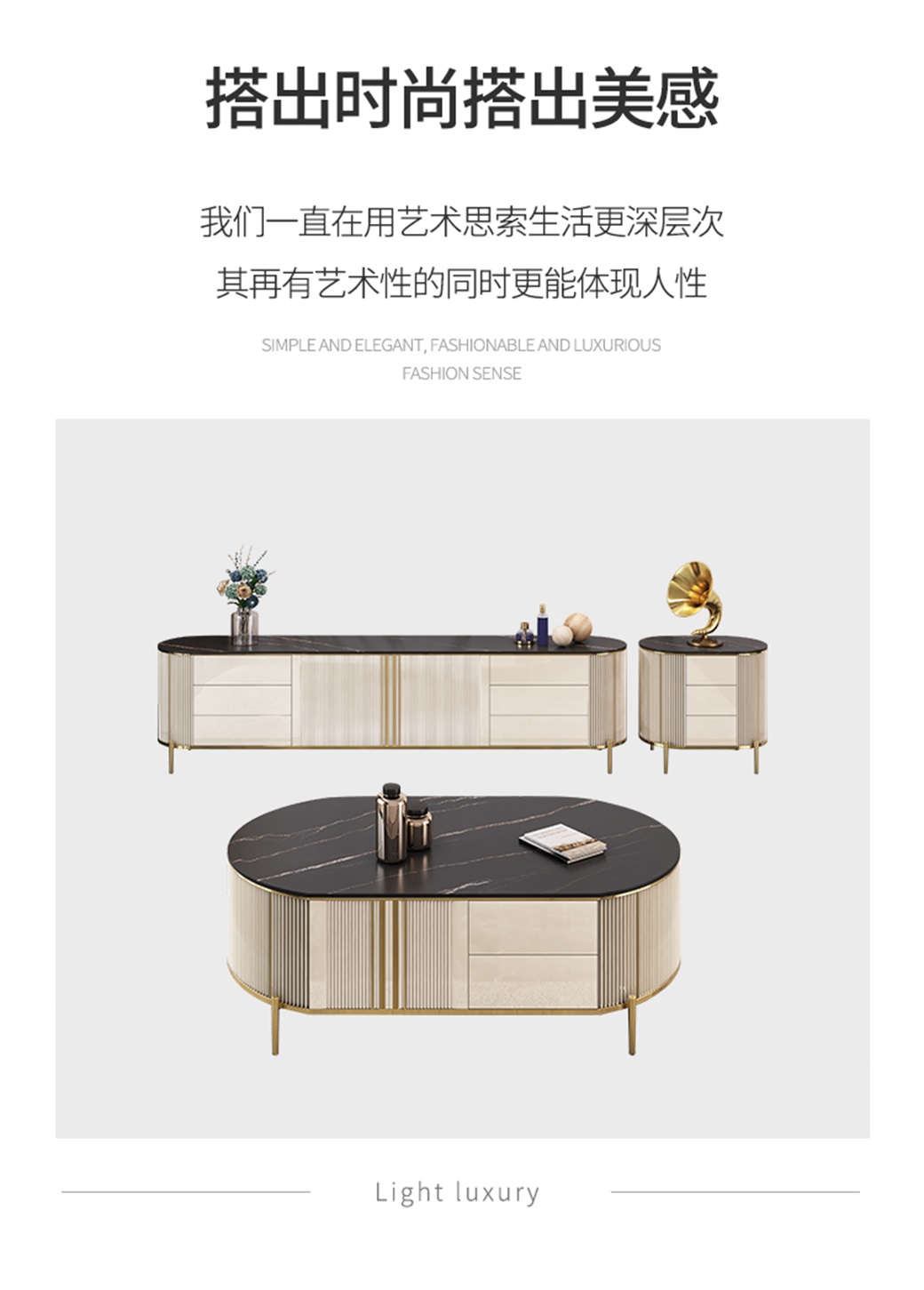 【简奢家】轻奢 不锈钢镀金+烤漆面+岩板面 茶几