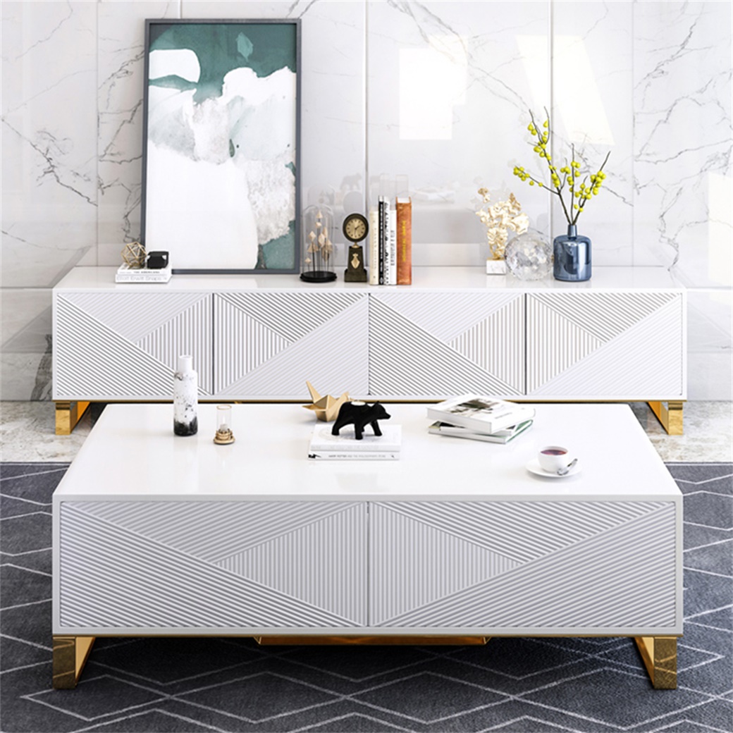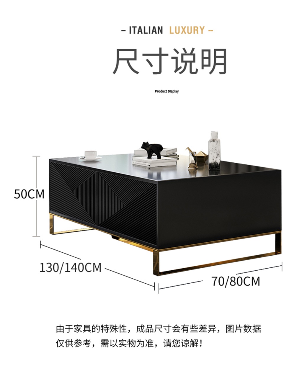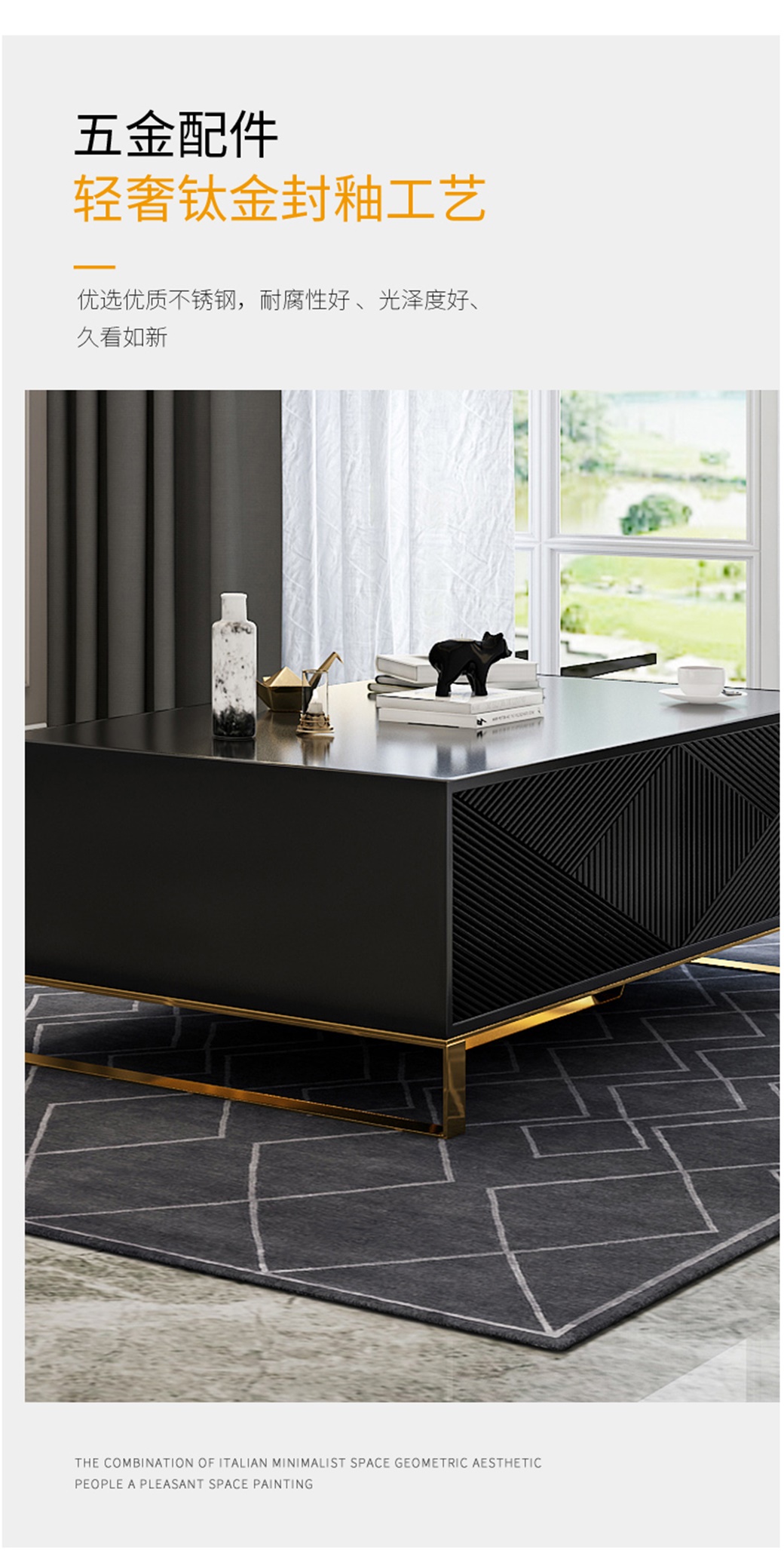 【简奢家】轻奢 电镀封油无指纹+黑白亮板哑光烤漆+玻璃+实木抽屉 茶几