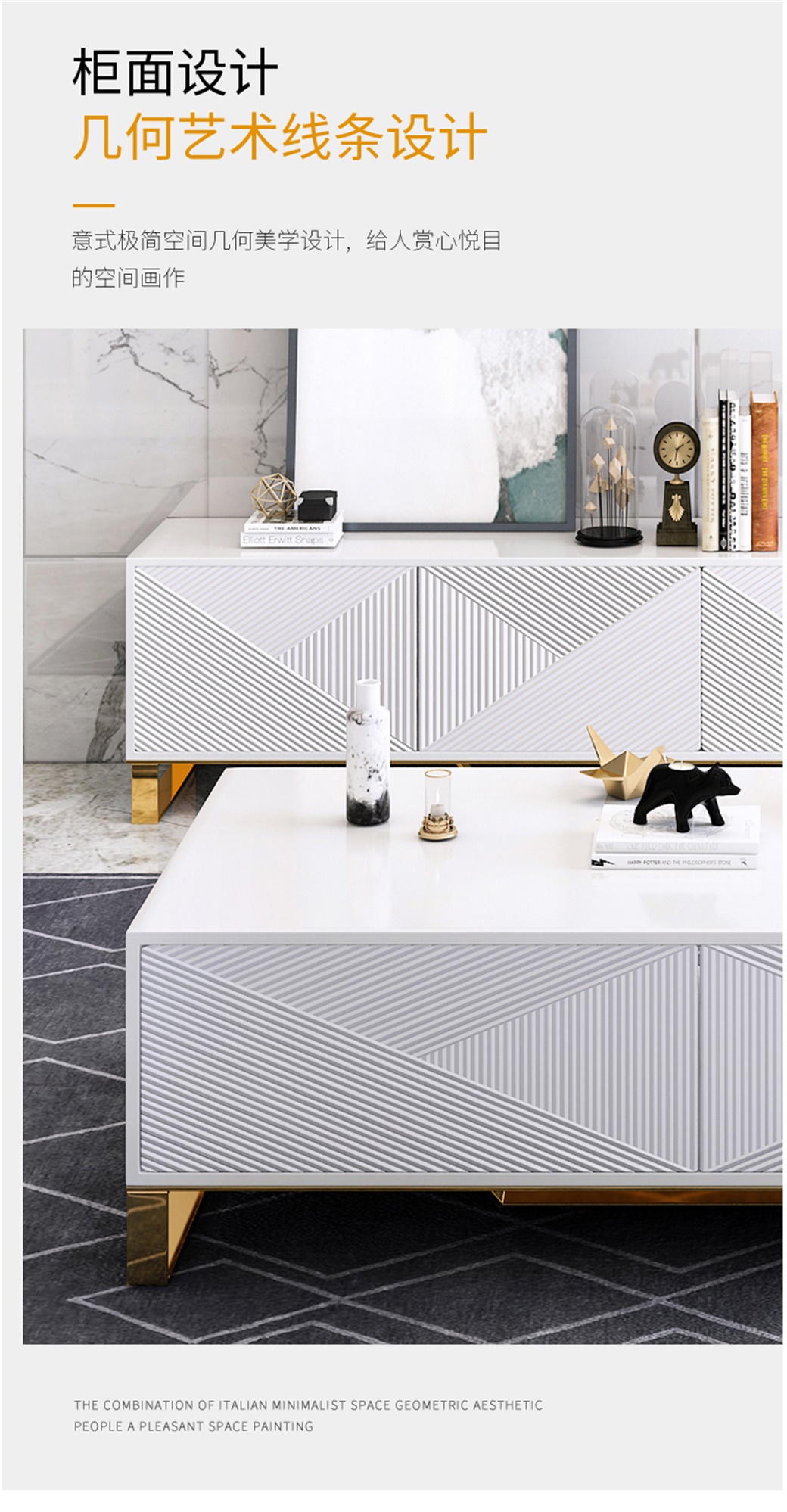 • 电镀封油无指纹+黑白亮板哑光烤漆+岩板+实木抽屉