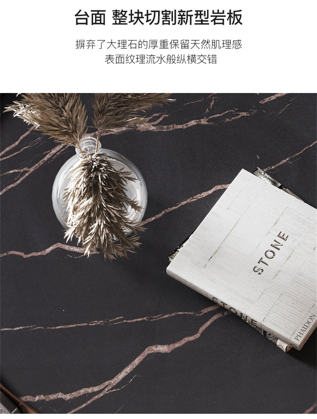 岩板+玫瑰金框+碳素钢脚+钢化玻璃