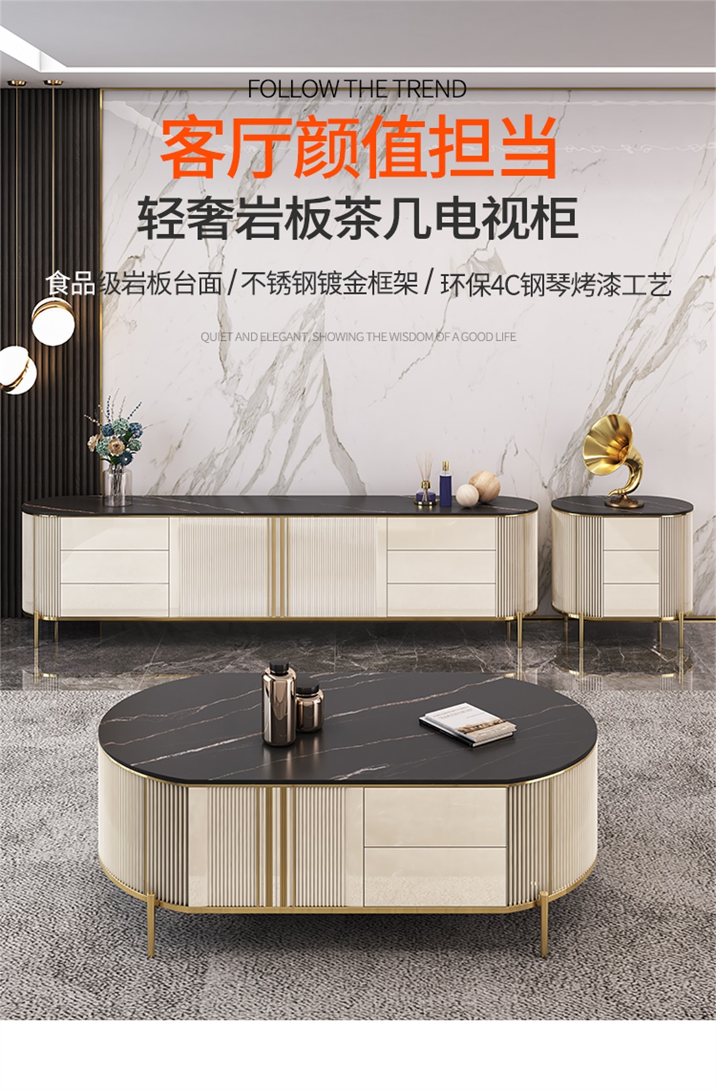 【简奢家】轻奢 不锈钢镀金+烤漆面+岩板面 电视柜