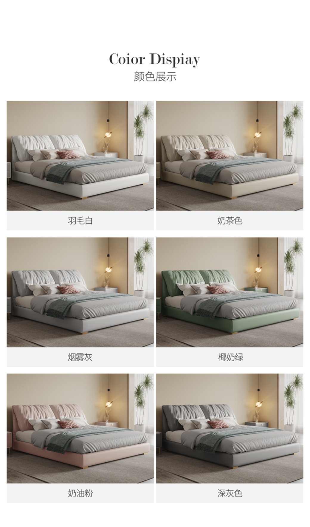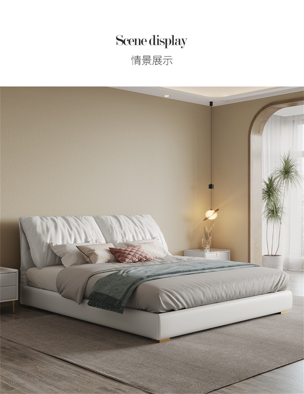 【简奢家】轻奢 纳帕头层真皮+高密度海棉+白鹅羽绒+俄罗斯进口落叶松内架+不锈五金脚+10分松木钢木排骨架 1.5米床