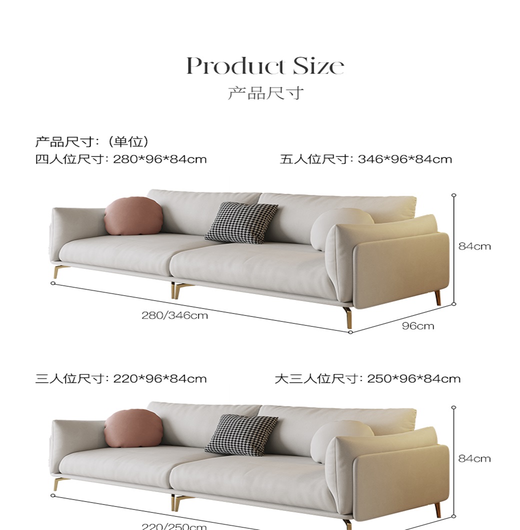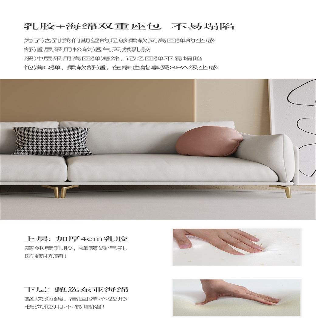 • 科技布+高密度海棉+整块乳胶+俄罗斯落叶松框架+俄罗斯落全实木脚