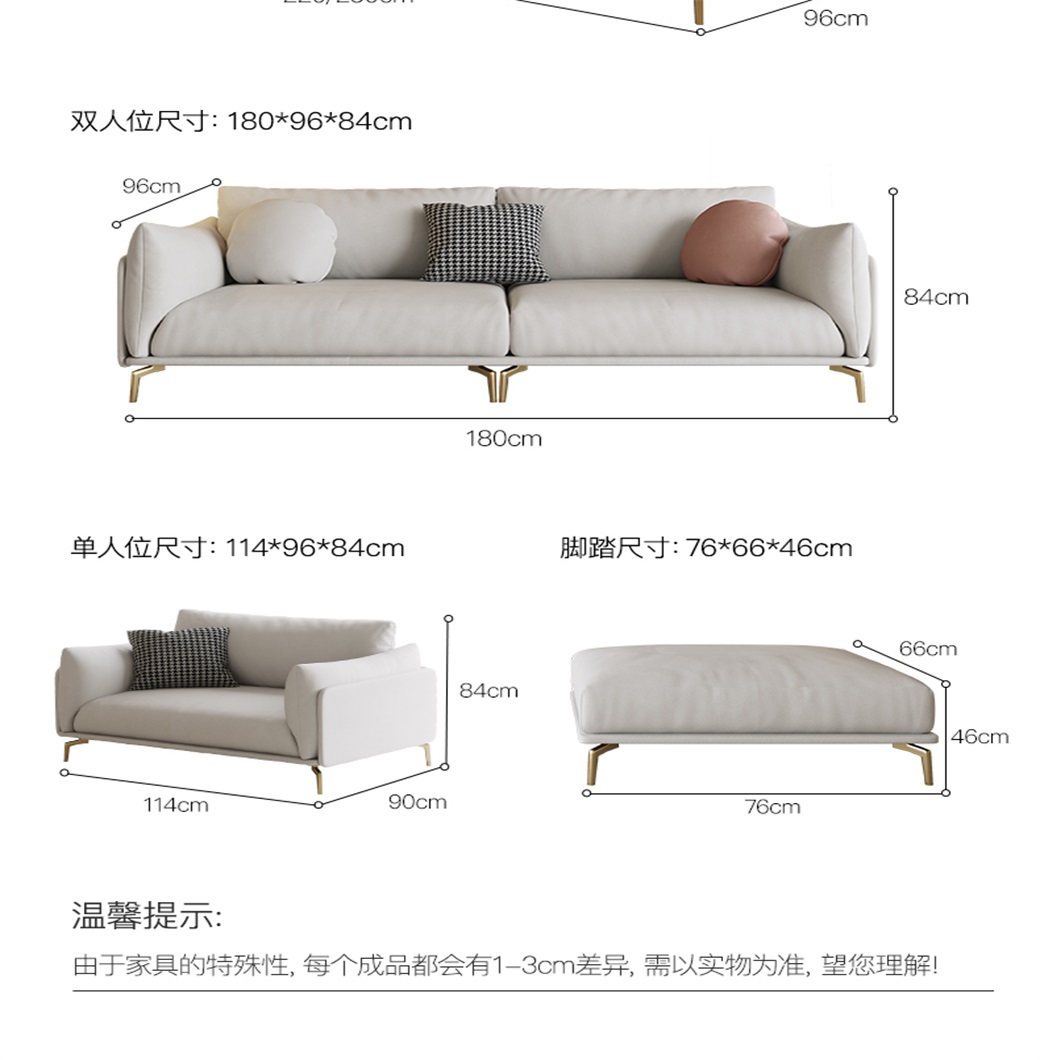 【简奢家】轻奢 科技布+高密度海棉+整块乳胶+俄罗斯落叶松框架+俄罗斯落全实木脚 单人位