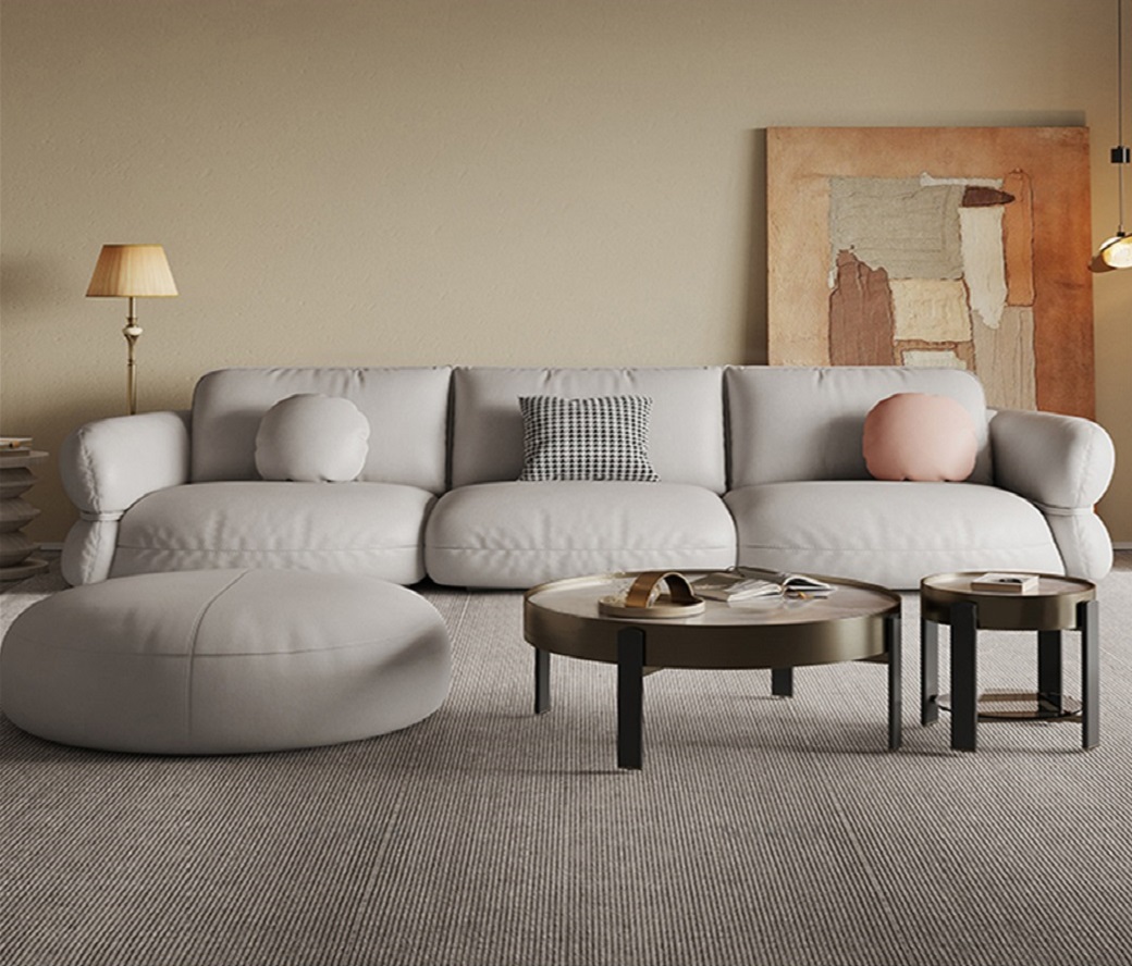 • 科技皮+高密度海棉+白鹅羽绒靠包+全实木内架+碳素钢脚