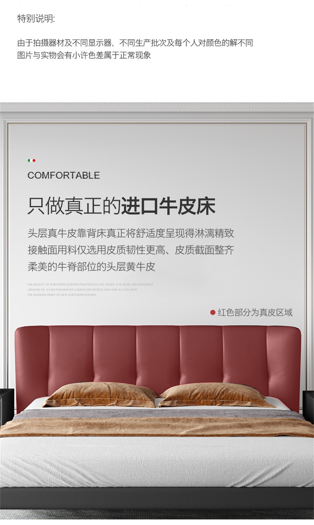 【简奢家】极简 接触面仿真皮+高密海棉+鹅绒靠包+全实木内架+碳素钢脚 1.5米床
