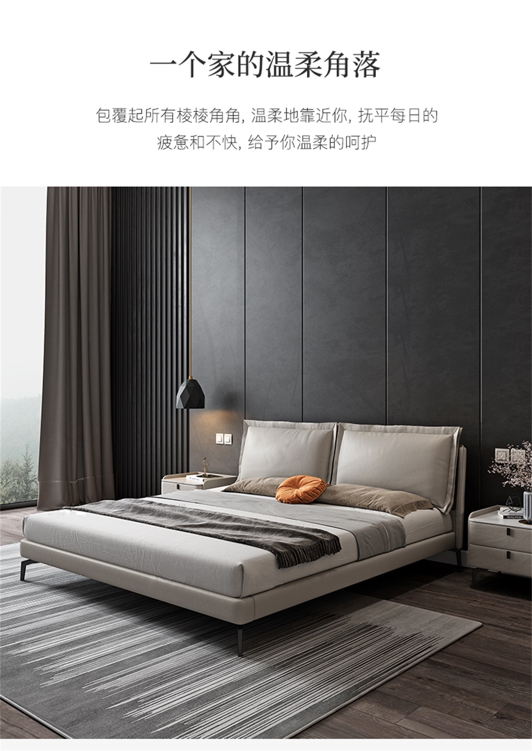 【简奢家】极简 接触面仿真皮+高密海棉+鹅绒靠包+全实木内架+碳素钢脚 1.8米床