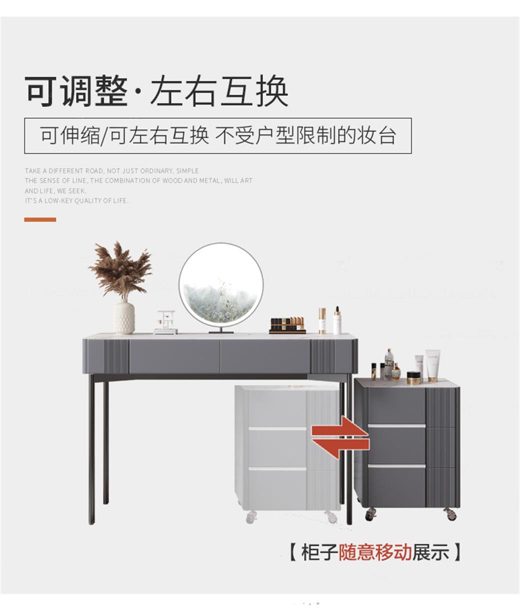 【简奢家】极简 岩板+E1级密度板+实木抽屉+碳素钢底架 妆镜+妆台+妆凳