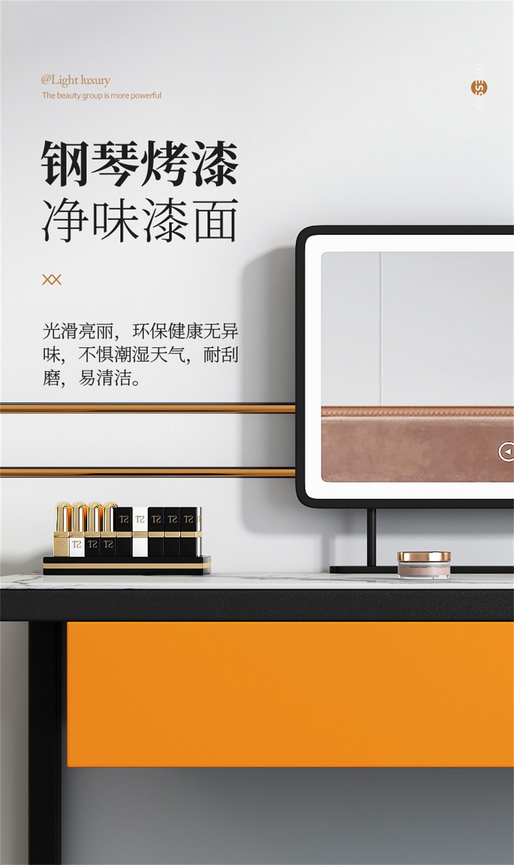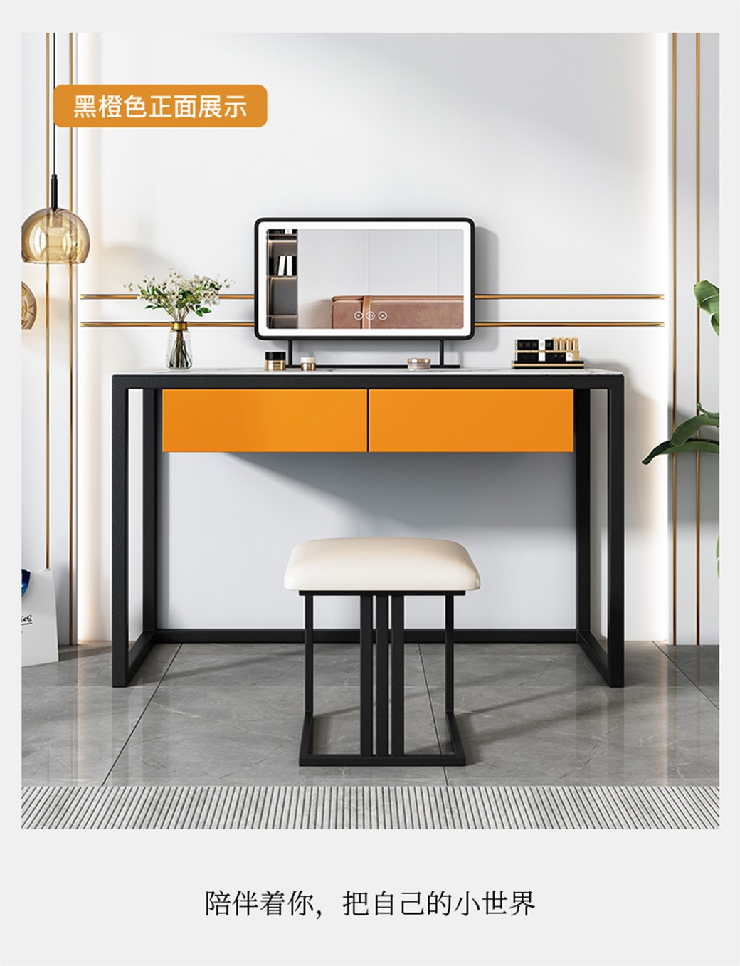 【简奢家】极简 岩板+E1级密度板+实木抽屉+碳素钢底架 妆镜+妆台+妆凳