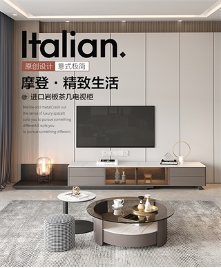 【简奢家】极简 岩板+E1级高密度板+钢琴烤漆+茶几玻璃+感应灯 电视柜