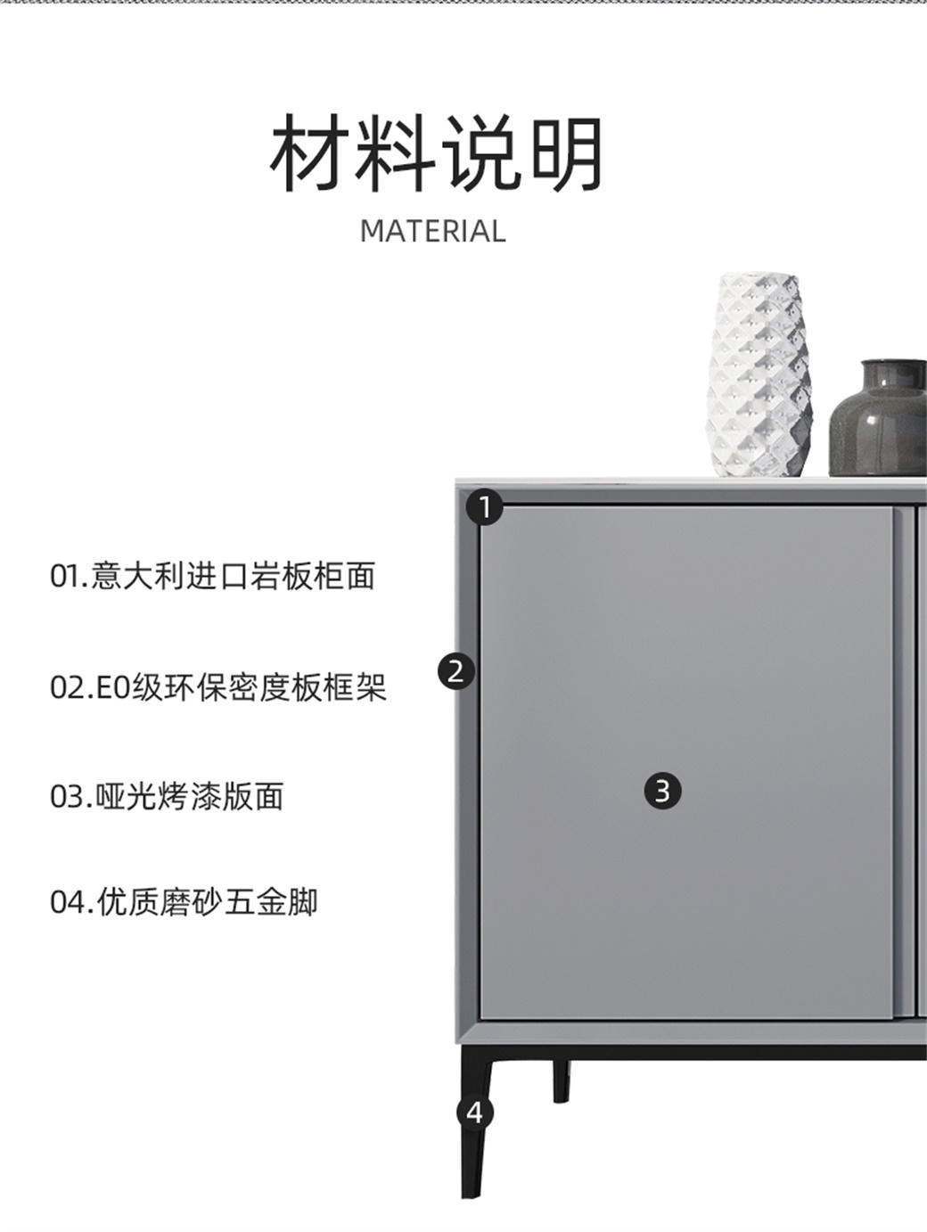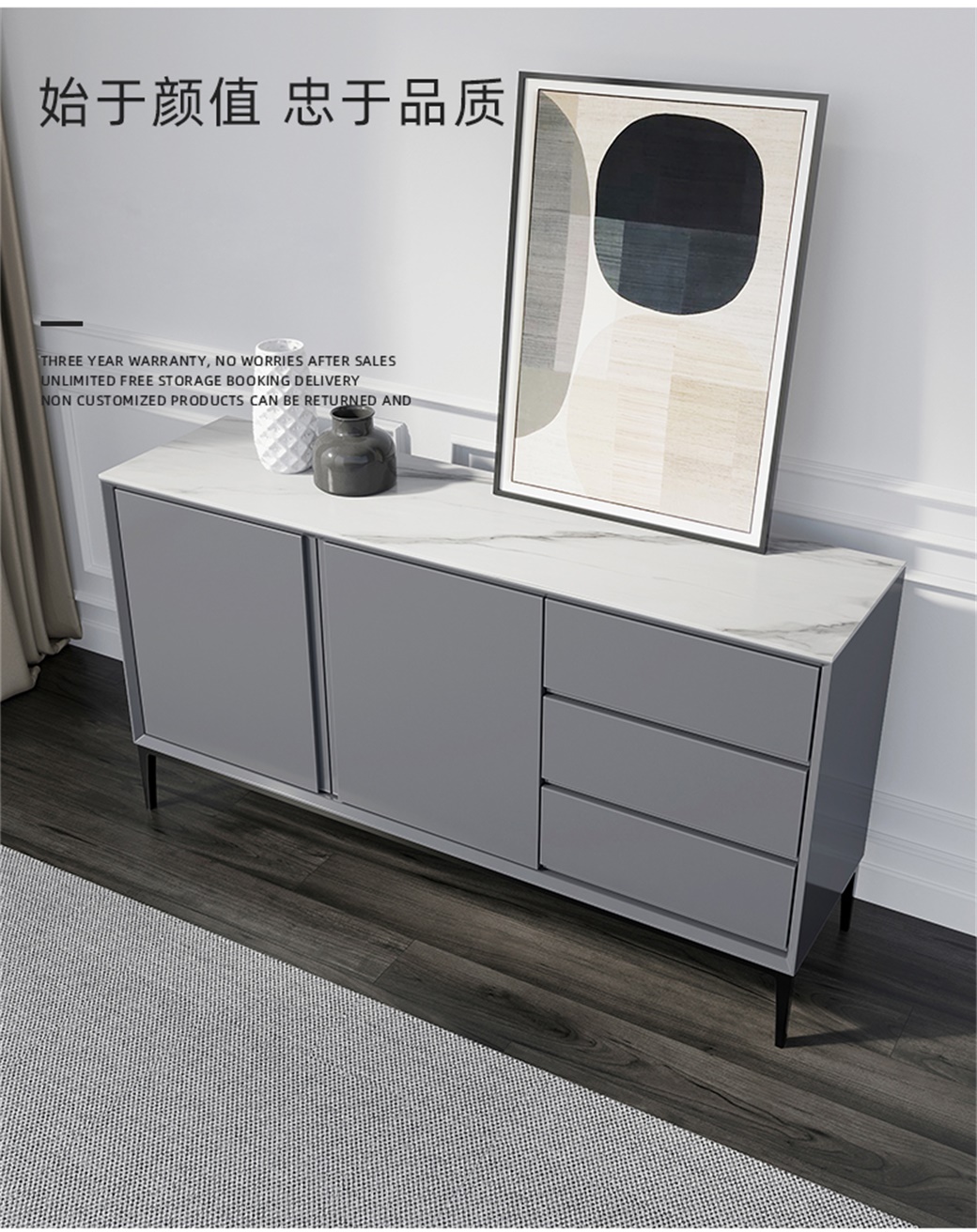 【简奢家】极简 岩板+E1板材+哑光烤漆+碳素钢脚(杏色/灰色) 餐边柜