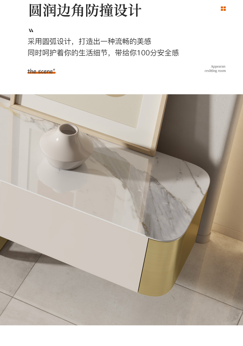 材质:岩板+钢琴烤漆+E1级环保板材+不锈钢五金镀金