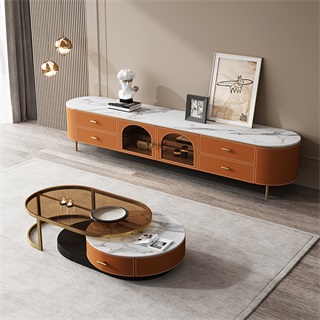 【简奢家】 岩板+E1级中纤板+马鞍皮+3C钢化玻璃+LED灯+镀金五金脚 电视柜